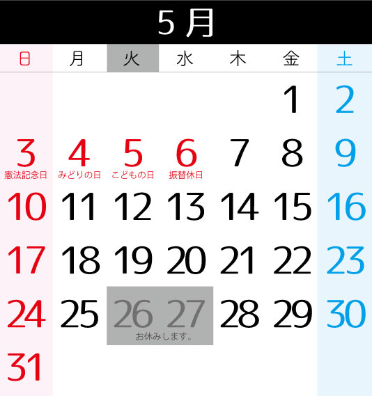※第四週目の火曜水曜はお休みします。